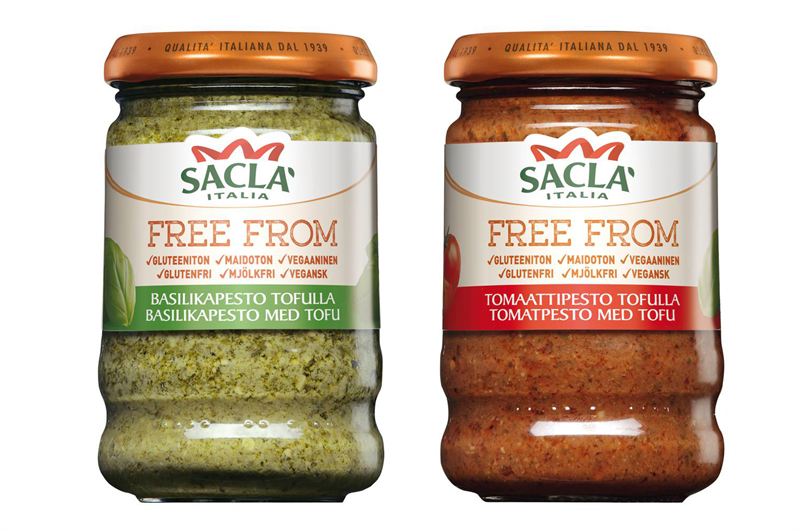 Saclà Free from Basilikapesto ja Free from Tomaattipesto valmistetaan Saclàn kotimaassa Italiassa mausta tinkimättä. Uutuuspestot ovat gluteenittomia, vehnättömiä ja maidottomia. Saclàn perinteisten basilika- ja tomaattipestojen Grana Padano -juusto on Free from -pestoissa korvattu tofulla, joten uutuudet uutuudet sopivat myös vegaaniseen ruokavalioon. Tofun ansiosta peston rakenne ja maku säilyvät kermaisen täyteläisinä.